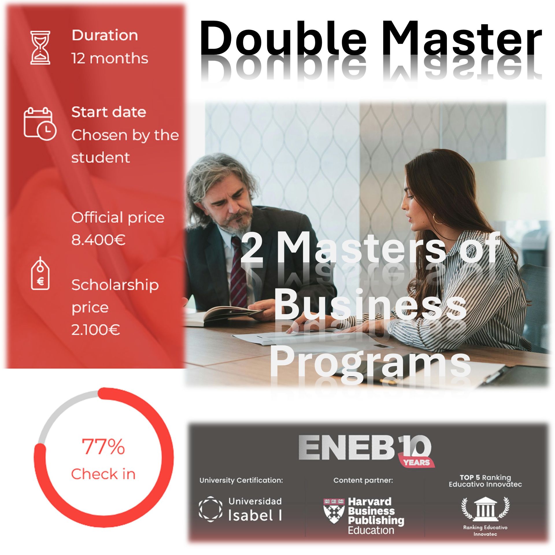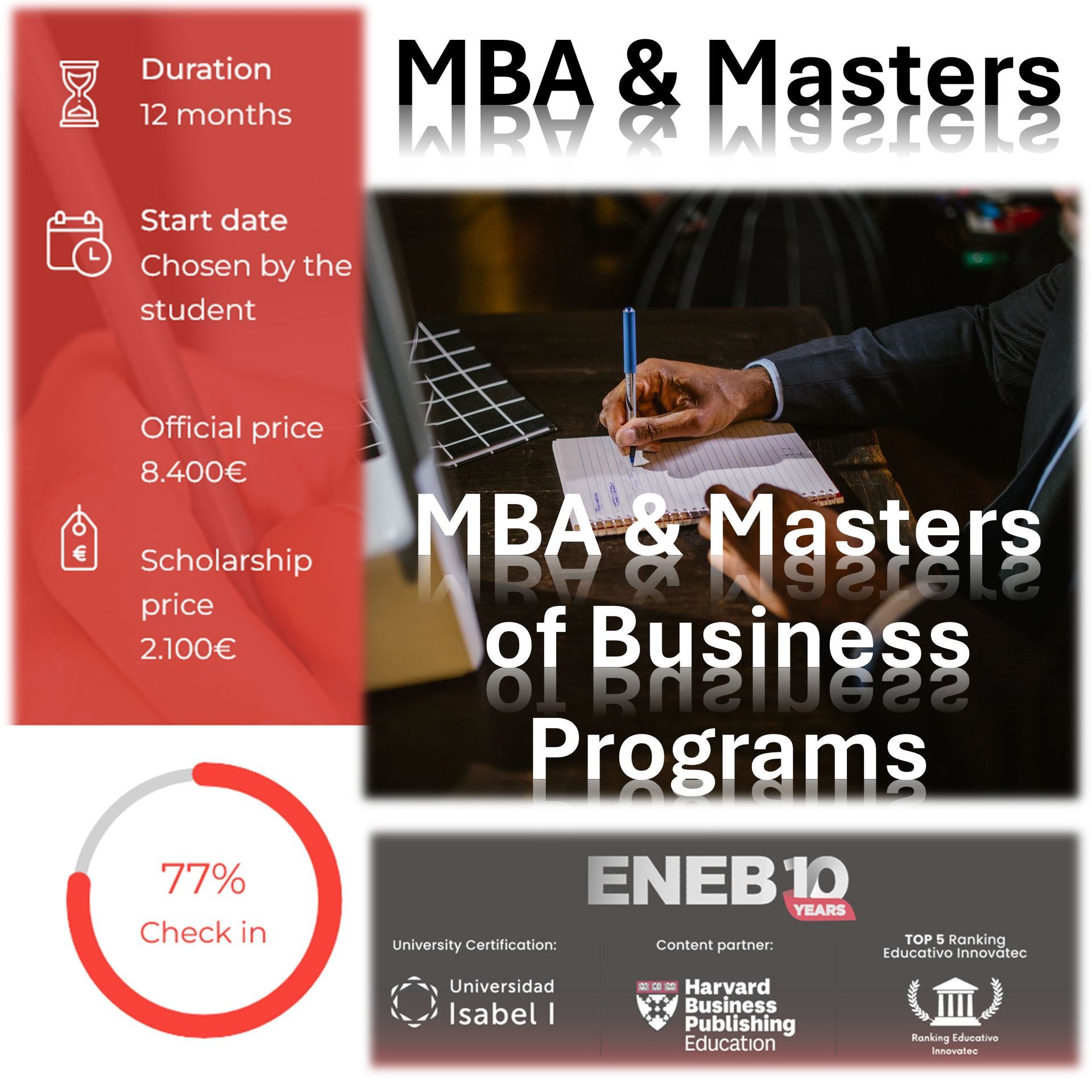Is at the core of ENEB. All programs are accredited by Universidad Isabel I, granting ECTS credits within the European Higher Education Area, ensuring academic rigor, homogeneity, and global recognition. Students benefit from a 24/7 virtual campus with tutor support, guaranteeing guidance, clarity, and full understanding of each subject. Upon completion, graduates earn a double certification: a Master’s Diploma and a Diploma of Specialization in Innovation and Project Management, with the option to request additional university certification from Universidad Isabel I for further international credibility.